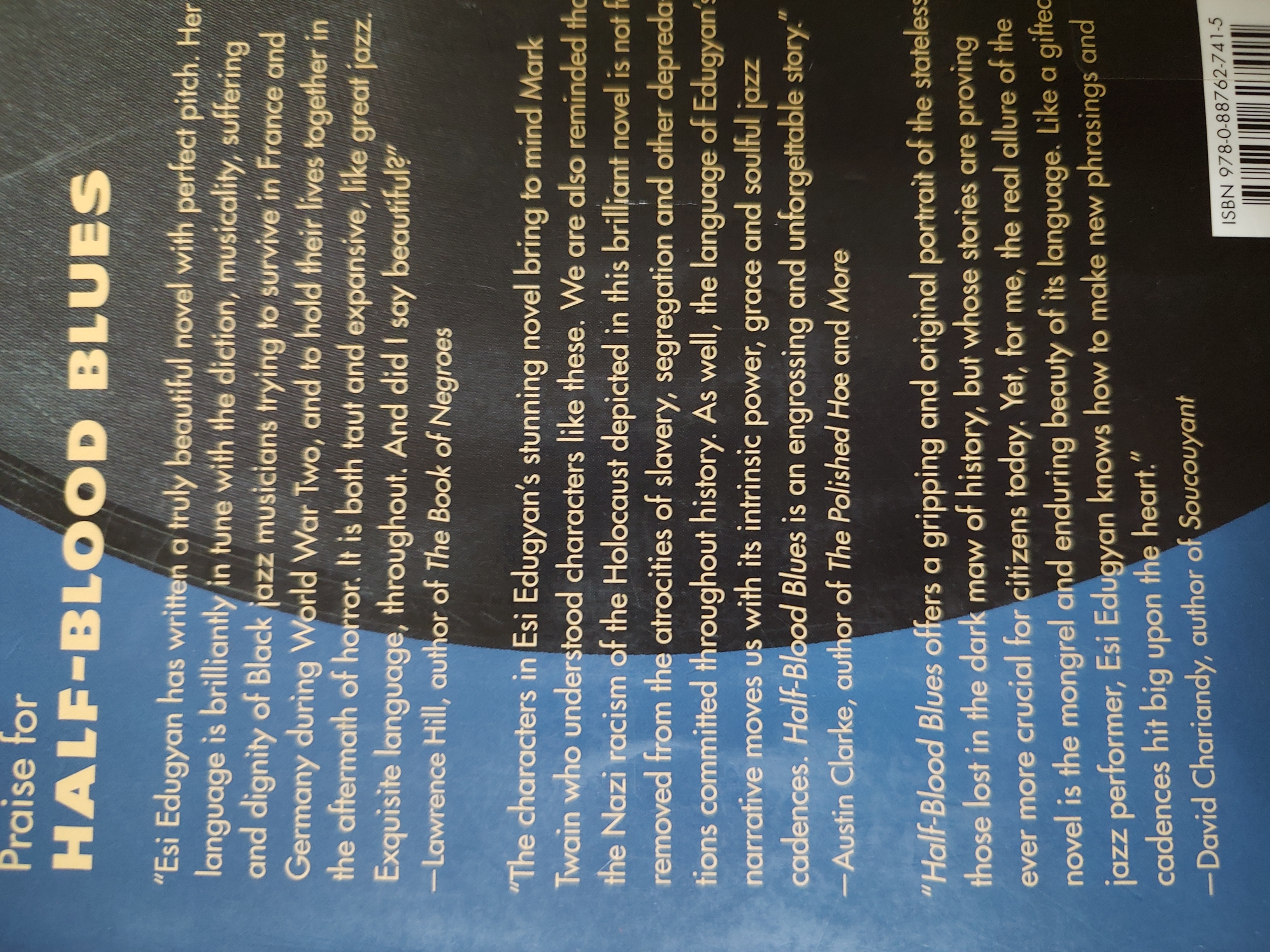 Hi all, just making a book recommendation. I'm just about finished reading "Half-Blood Blues" by Esi Edugyan. About some Trad Jazz players in Berlin and Paris in the 30s just as the war is starting. It's fiction but a has a decent atmosphere.