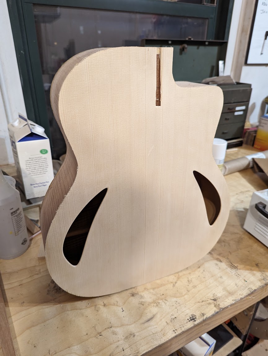 That Turnavoz guitar is an experiment, I had an extra set of classical sized ribs but I've never made a steel string guitar before. It's kind of modeled on a J45 but it's a smaller body. The turnavoz should drop the air resonance a bit to potentially make up for some of that lost volume. We will see.