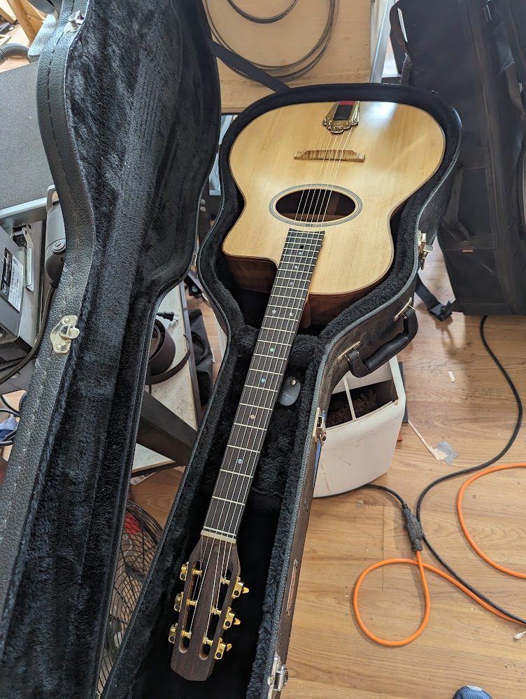 Don't worry. Videos to come. Matt and Max played my guitars for about an hour on Tuesday night, it was wonderful. The room is a little bright but you get the idea.