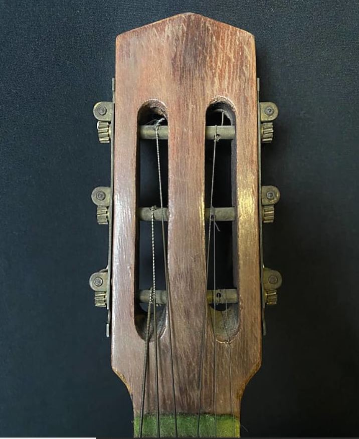 Curiously it has that little strip of felt behind the nut that I had always associated with Di Mauro guitars but this is definitely from Sicily, possibly something inherited from the mandolin traditions?