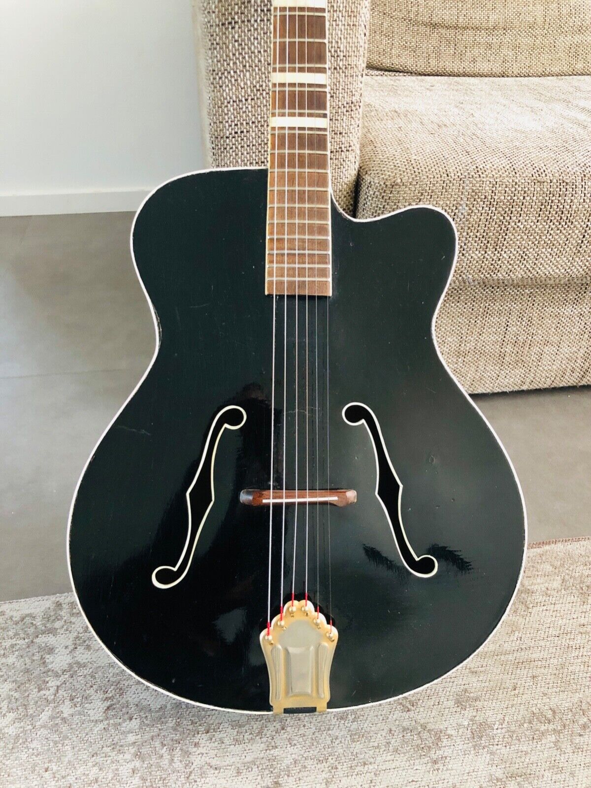 To my mind , he's definitely a contender for the main luthier of what I've called the "Clef" model (see page 1 of this thread) . We've already mentioned a V Jacobacci connection regarding this model - perhaps his partner, S. Amico, was building these guitars in their shared premises with some more "Sicilian" techniques &/or design ideas