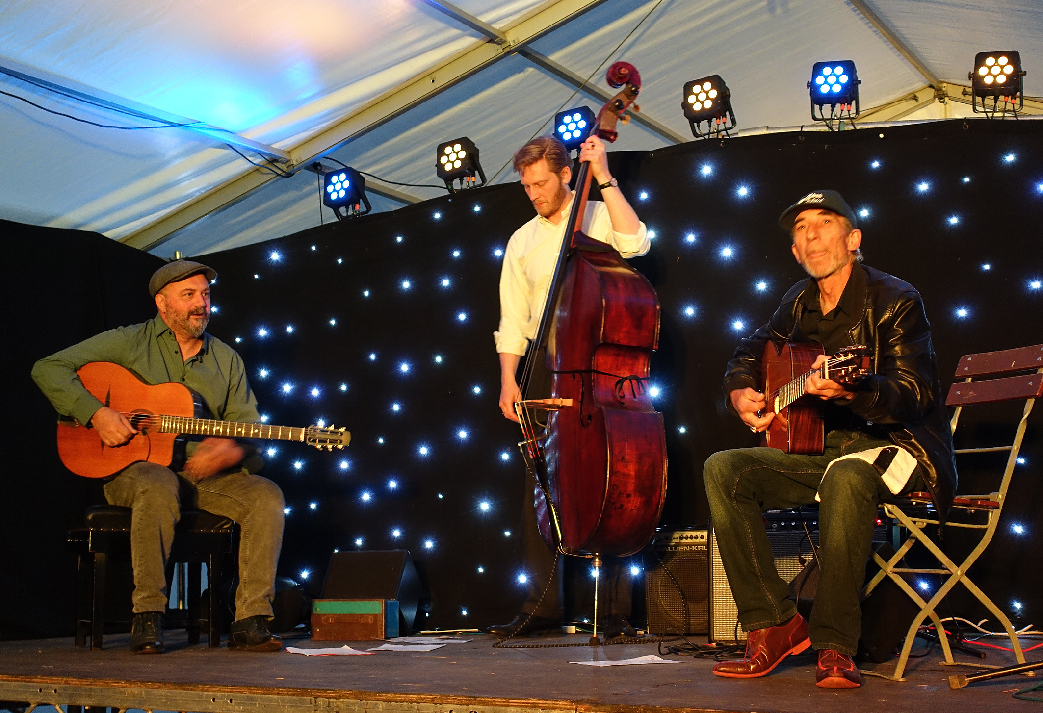 Yes, there's the Adrien Marco trio with Mathieu and Pete Thomas on bass, Debi Botos and Roby Lakatos (my goodness, what a show), Fanou Torracinta (with Adrien Tarrega and Edouard Pennes, and a superb pianist who was amazing!!!), Angelo Debarre, playing one of the new Selmers. Joe Webb on Piano and Giacomo Smith on Clarinet, with Ducato Piotrowski on guitar. Amati Scmitt and his All Stars made everyone stop and stare - absolutely beautiful. All four musicians were totally switched on and immersed. The bass of Roland Grob was as good as it gets. The audience were spellbound. I heard stalwarts of the gypsy jazz festival scene saying that was the best concert they'd ever seen in thirty-odd years.