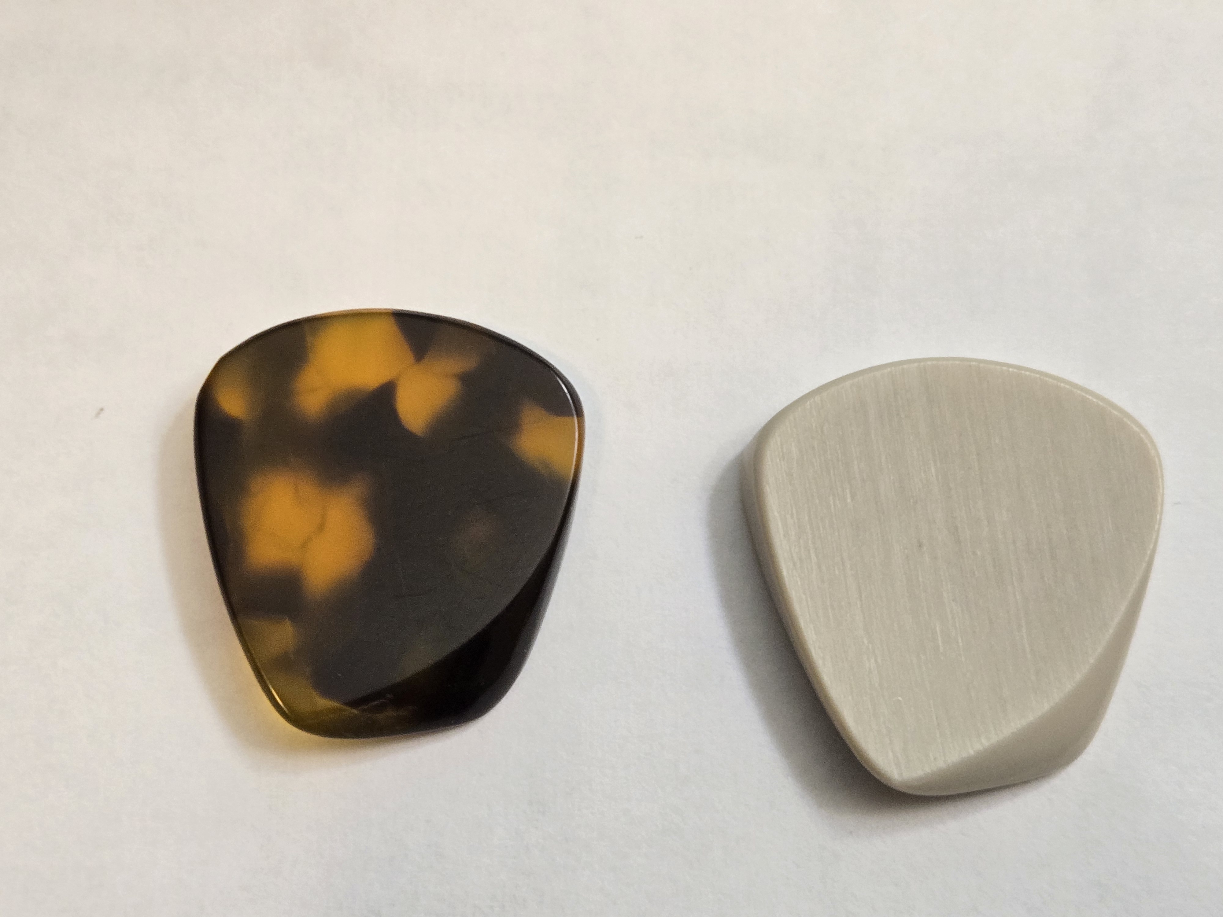 Littlemark, are your EML picks sort of squarish at the tip, with one side of the tip a little longer? I have trouble using that sort of pick, at least for leads.