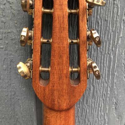 The tuners are upgraded. Riser behind the nut re-glued. Comes with a classy hard case. Not much play time at all.