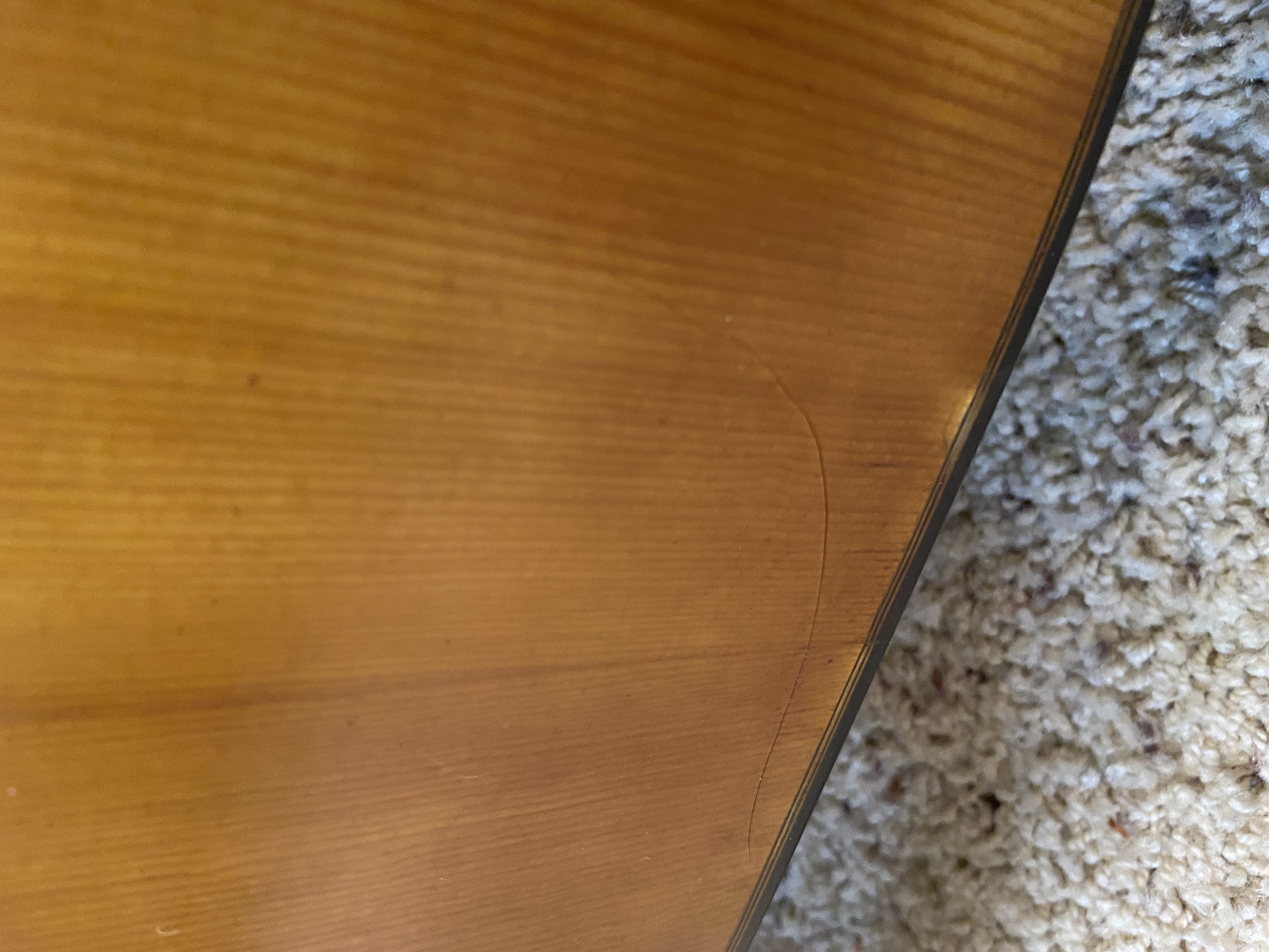 Guitar is in very good shape. No dents but the only thing to note is a few finish checking. See pictures. These are cosmetic and does not affect the guitar structurally. They are hard to see. Only visible up close.