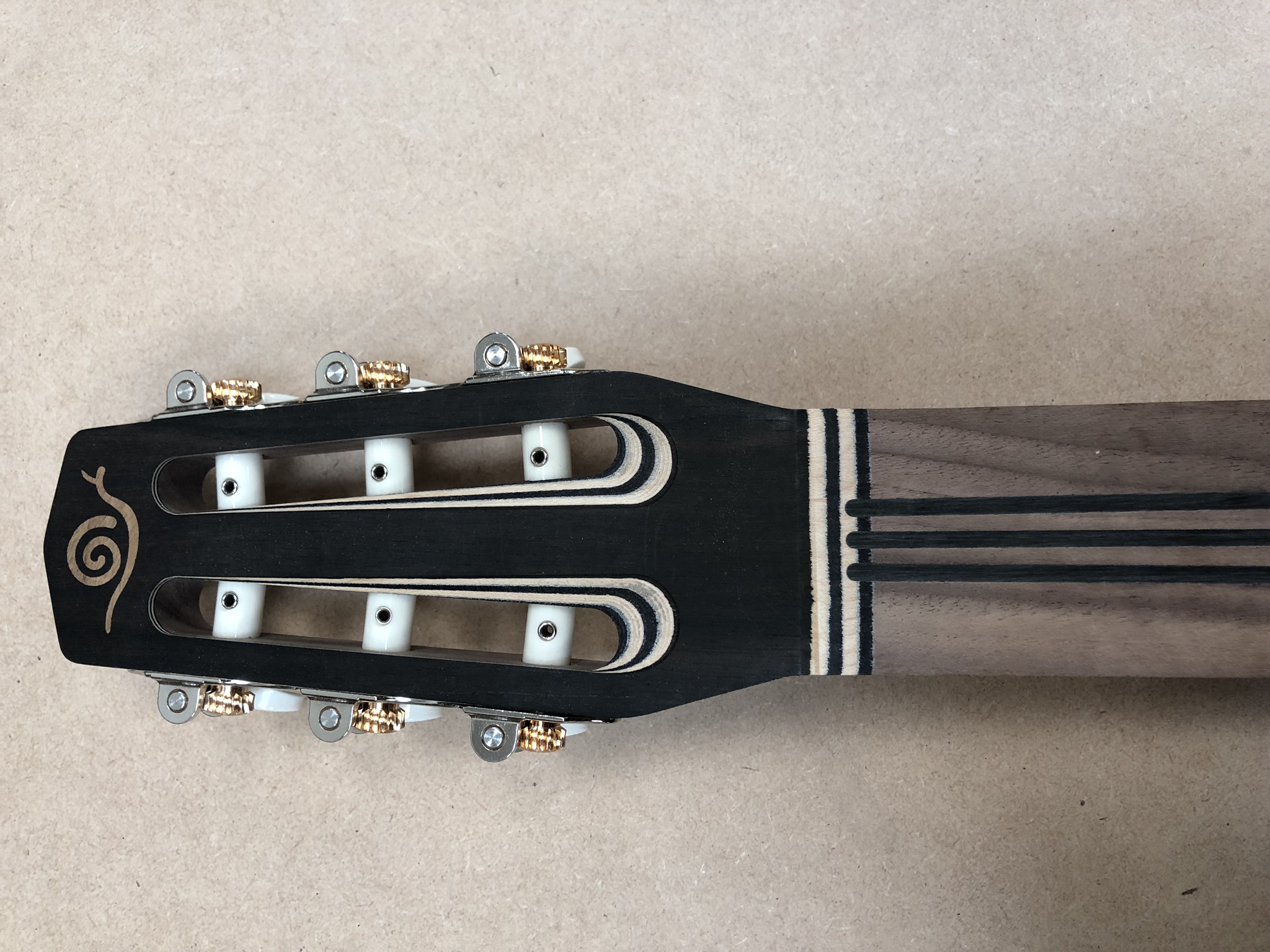 Sorry I went a bit quiet on this project but here ares some pics of the finished guitar. How does it sound? Well I need to spend a bit of time on the frets and I think the bridge could do with being about 0.75mm higher to cut out a bit of fret buzz on the bass strings but I think it will be pretty good once these issues have been addressed. I have one other Concert model in birdseye maple which I am making but I have been mainly working on a petite bouche which is nearly ready to lacquer and I'll post pics of this under a different topic.