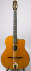 This guitar is Bob's tribute to the legendary Franco-Sicilian luthier Jacques Castelluccia. This wonderful three brace design is very similar to Dorado Schmitt's guitar!