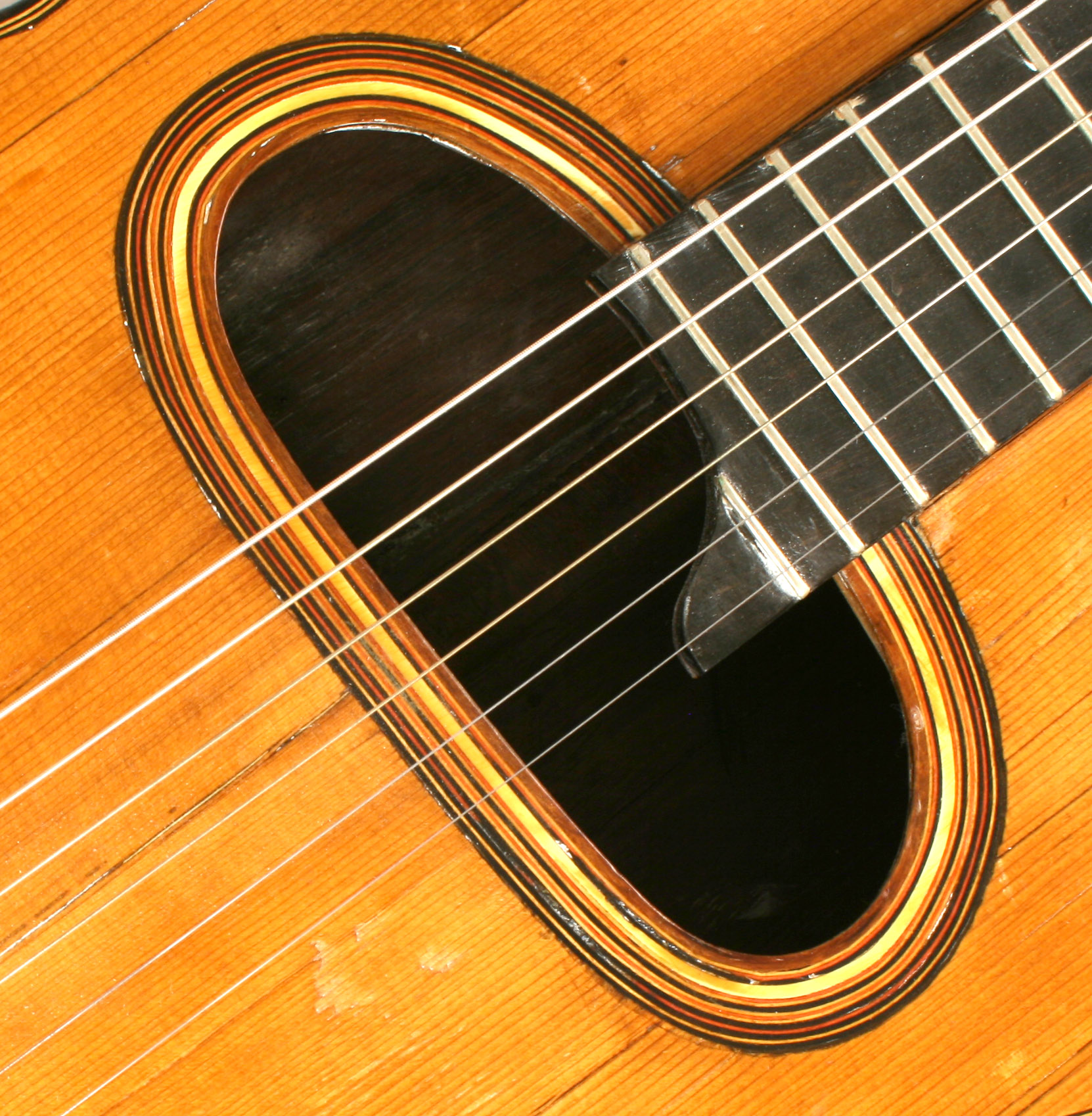 This is something you don't see very often: a 1930s Busato 12 fret D hole! If guitars could talk this one would certainly have a lot to say. It has undoubtedly lived many "Gypsy lives" and has the mojo to prove it.