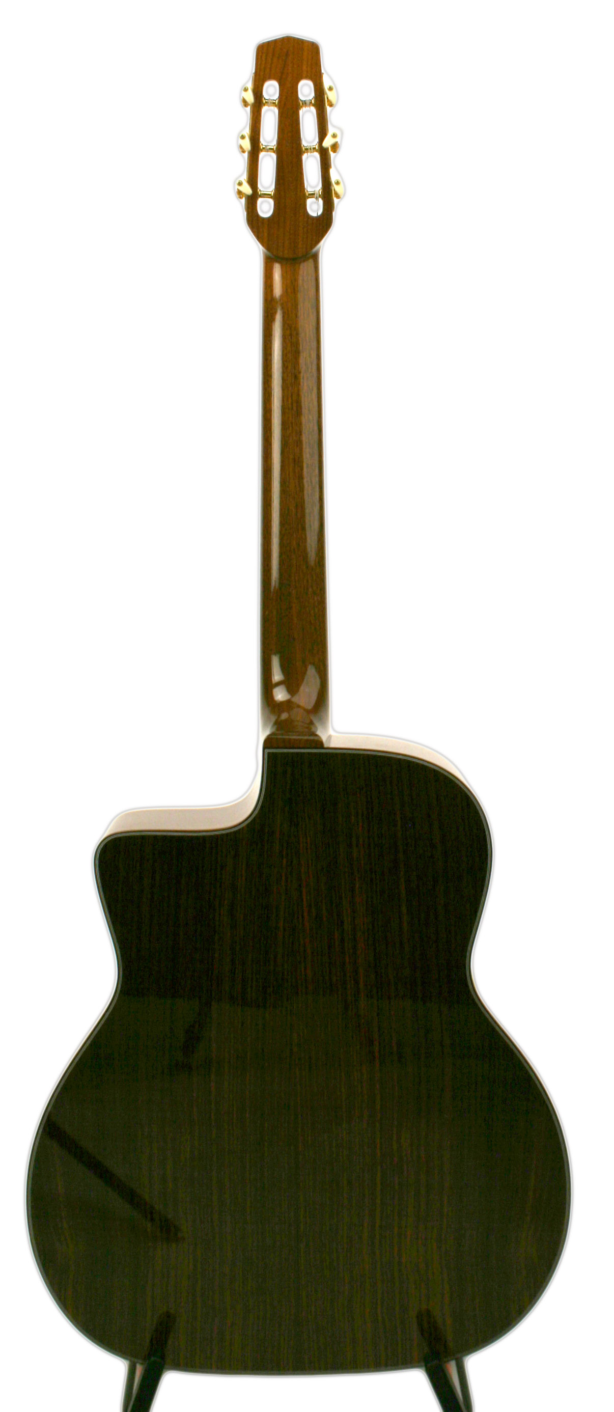 Here's a rare opportunity to own a fine, handmade guitar at a price normally reserved for Asian imports. This high quality Selmer copy was handmade in Dell'Arte's California workshop and features laminate rosewood back and sides, a bear claw spruce top, and a walnut neck. Hardware includes a set of Gotoh Three-on-a-Plate tuners and a DR tailpiece.