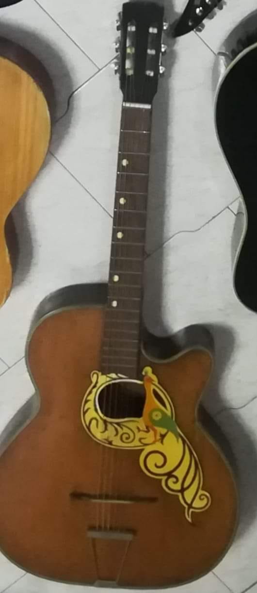 Good morning, recently I bought this old guitar and I think it should be a Caponnetto since the inlays on the fretboard reemble the ones on other Caponnetto guitars. Since this topic is related to sicilian guitars, has anyone ever een this model? It should be around the 30's and has a metal plate covering the (I think) pick up hole and also, as seen in the photos, another round plate covering a jack (?) input. I would know something more becouse the guy who sold it didn't know very much and Ii aven't found much online.