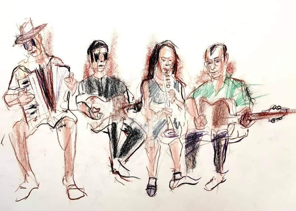 Yup that's me. Yes this guy is good with the pencil. Sometimes during jams in the past he'd play a few tunes and then spend the rest of the evening just sketching