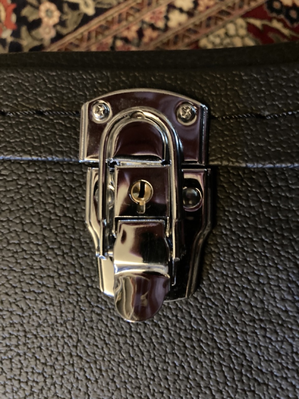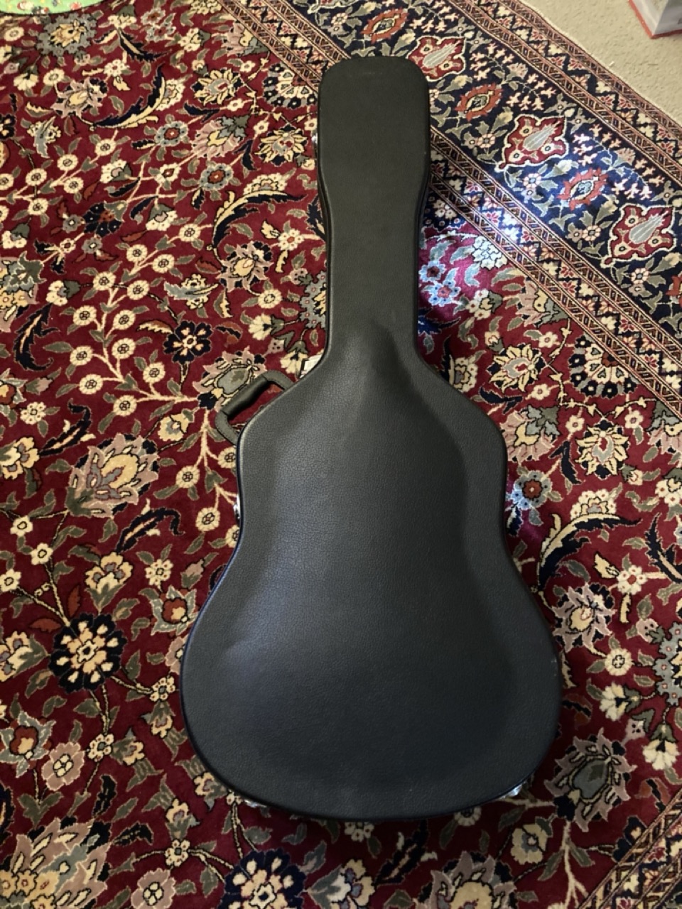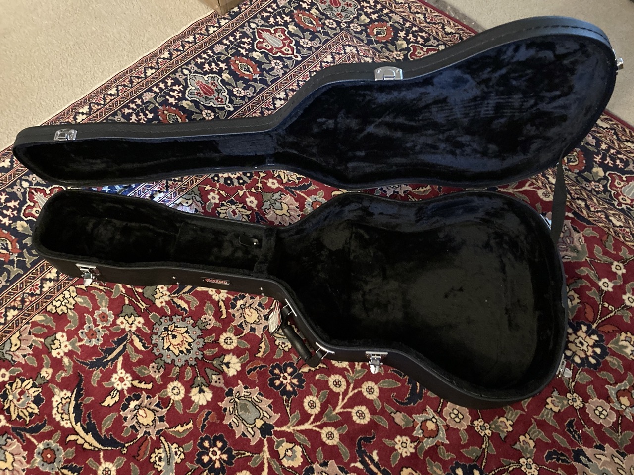 Case is a nearly new GATOR hardshell GWE-DREAD-12 arched top wood case still with tags ($120 value). Chrome plated hardware with lock. One slight rub on the Tolex as shown, otherwise very clean as new.
