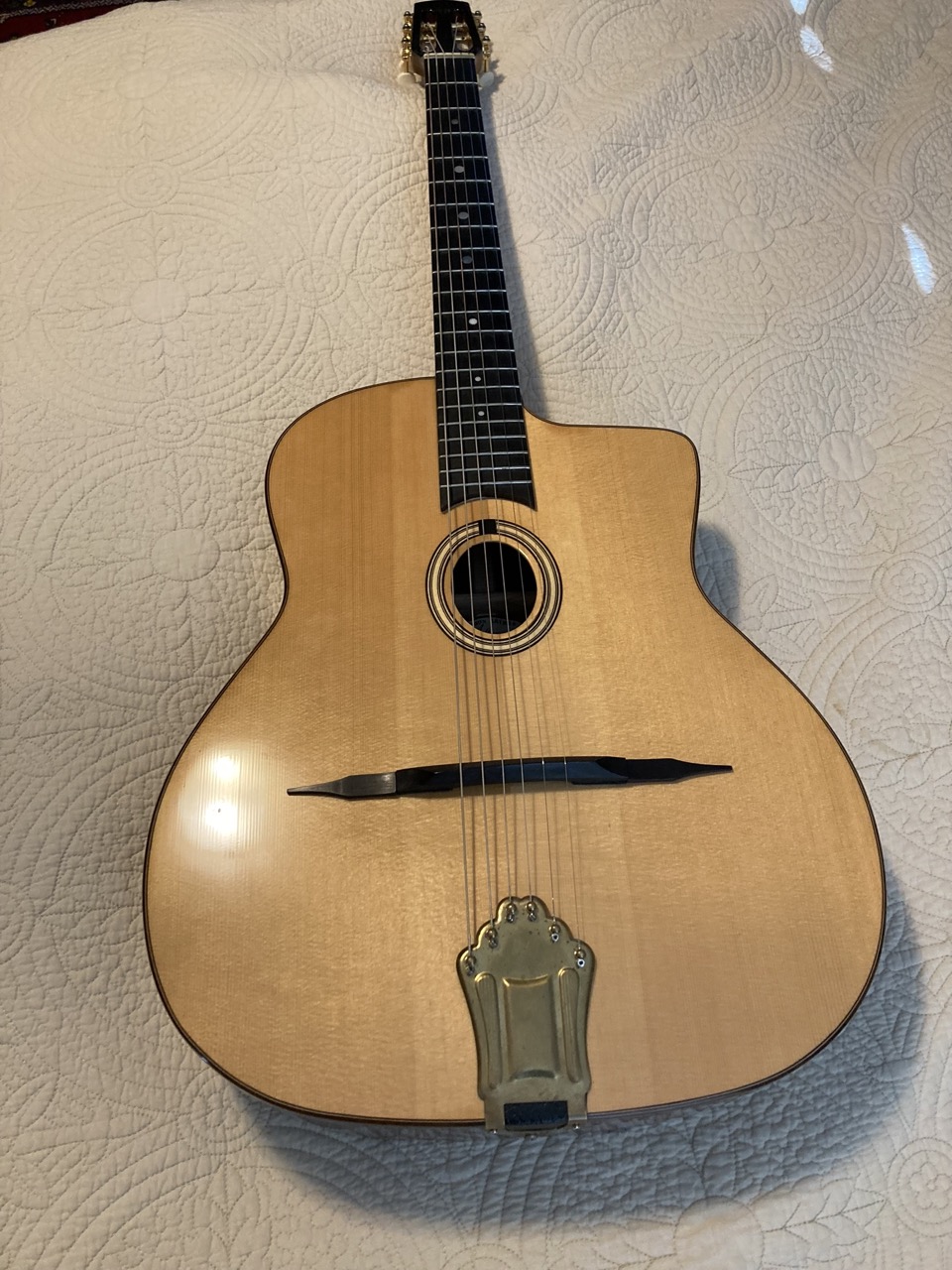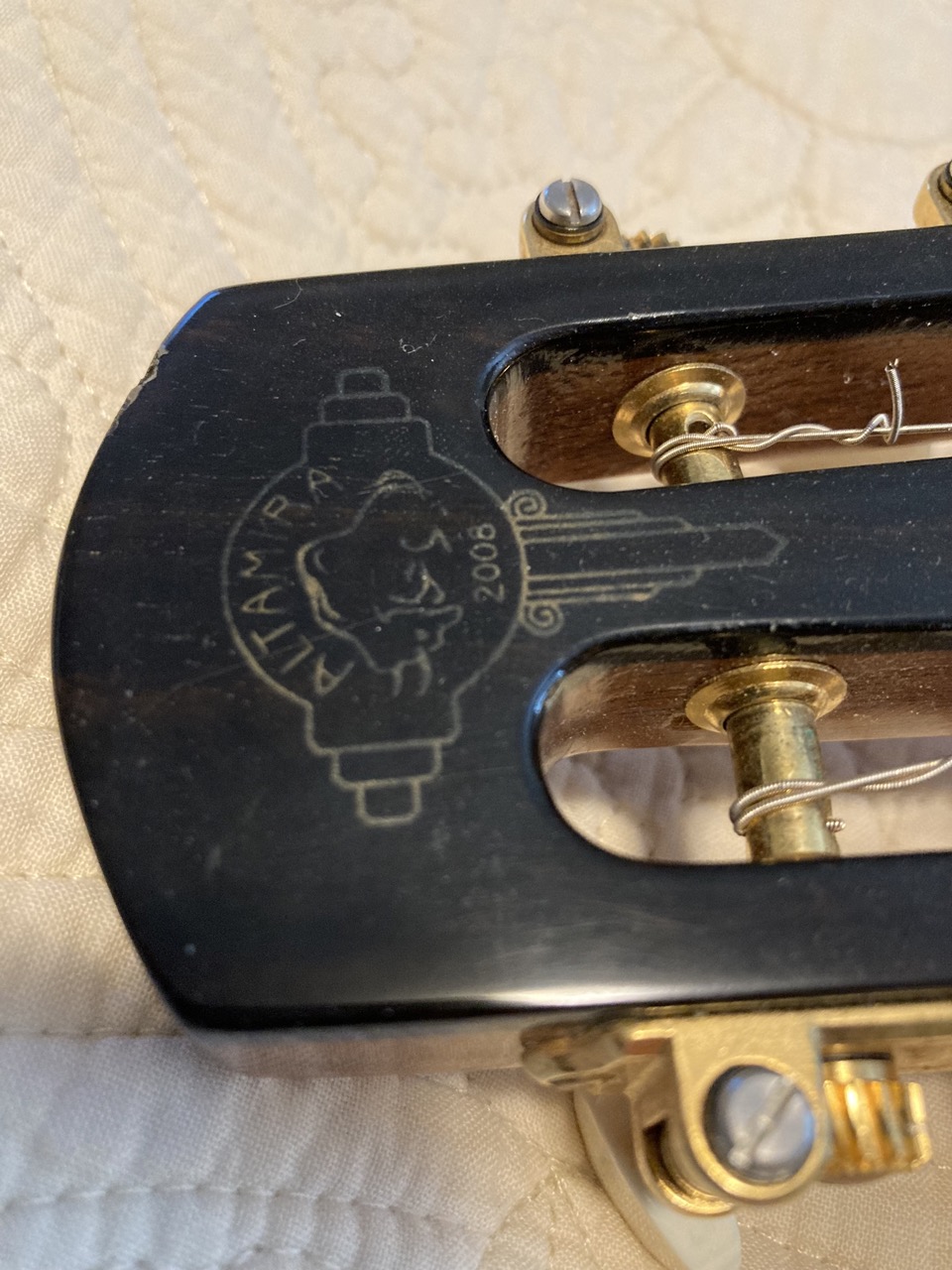 Original Altamira tailpiece was replaced by a previous owner with a Dupont tailpiece. Original will be included in the case. Dupont tailpiece remains on the guitar.