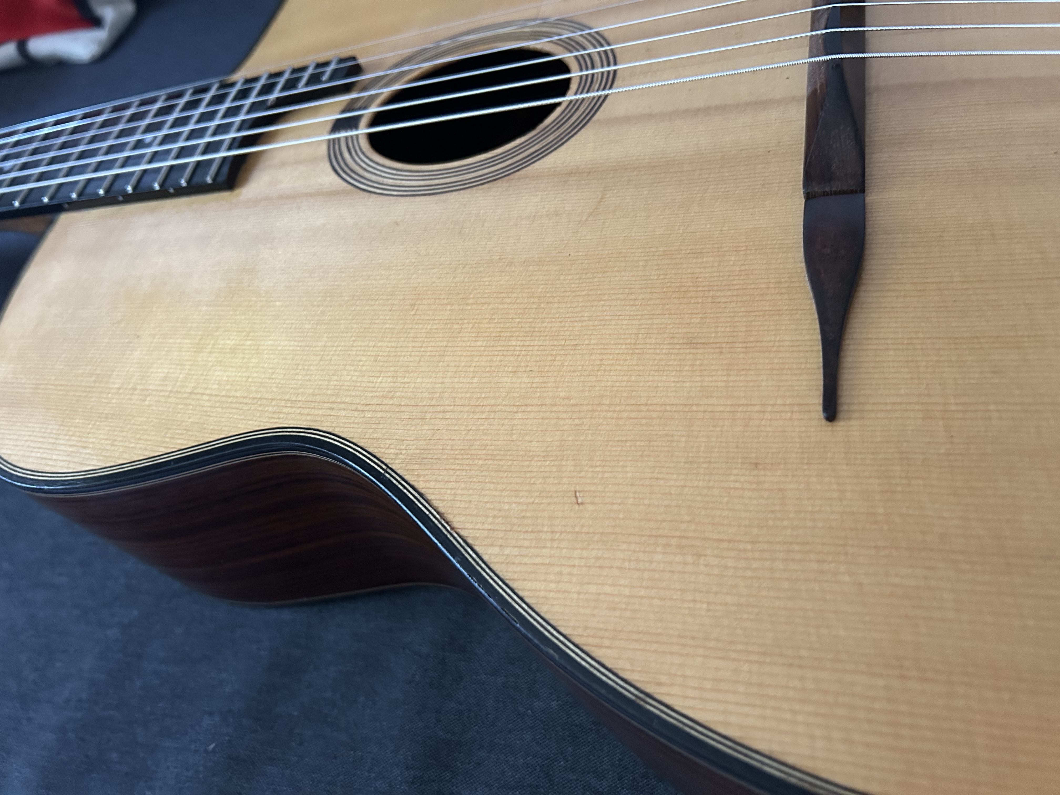 Hi I sell my AJL J'attendrai model, wonderful guitar made as a copy of the model played by django in his famous video. It's an oval hole 14 fret short scale. I bought here form Micheal and thi si the exact guitar.