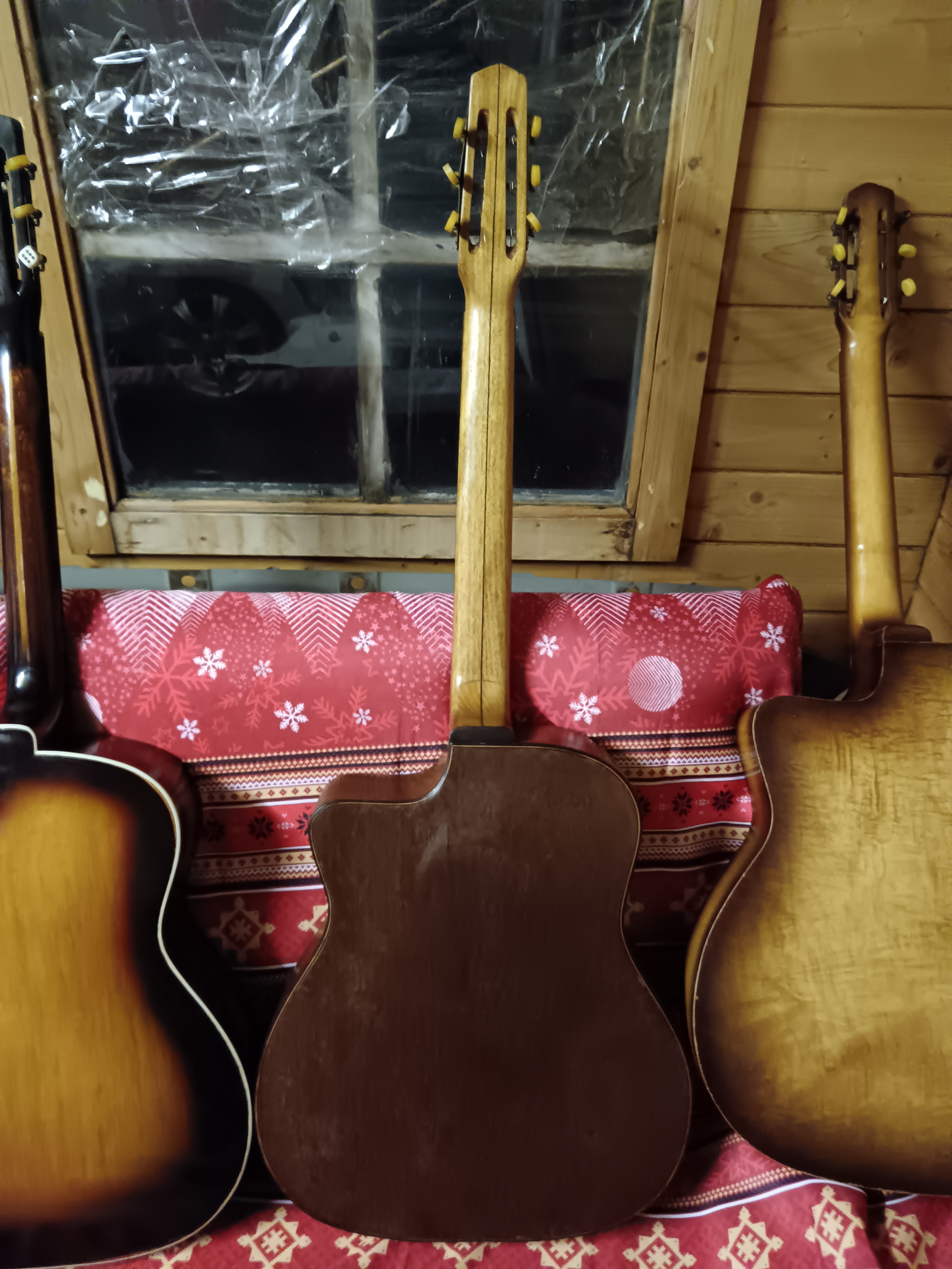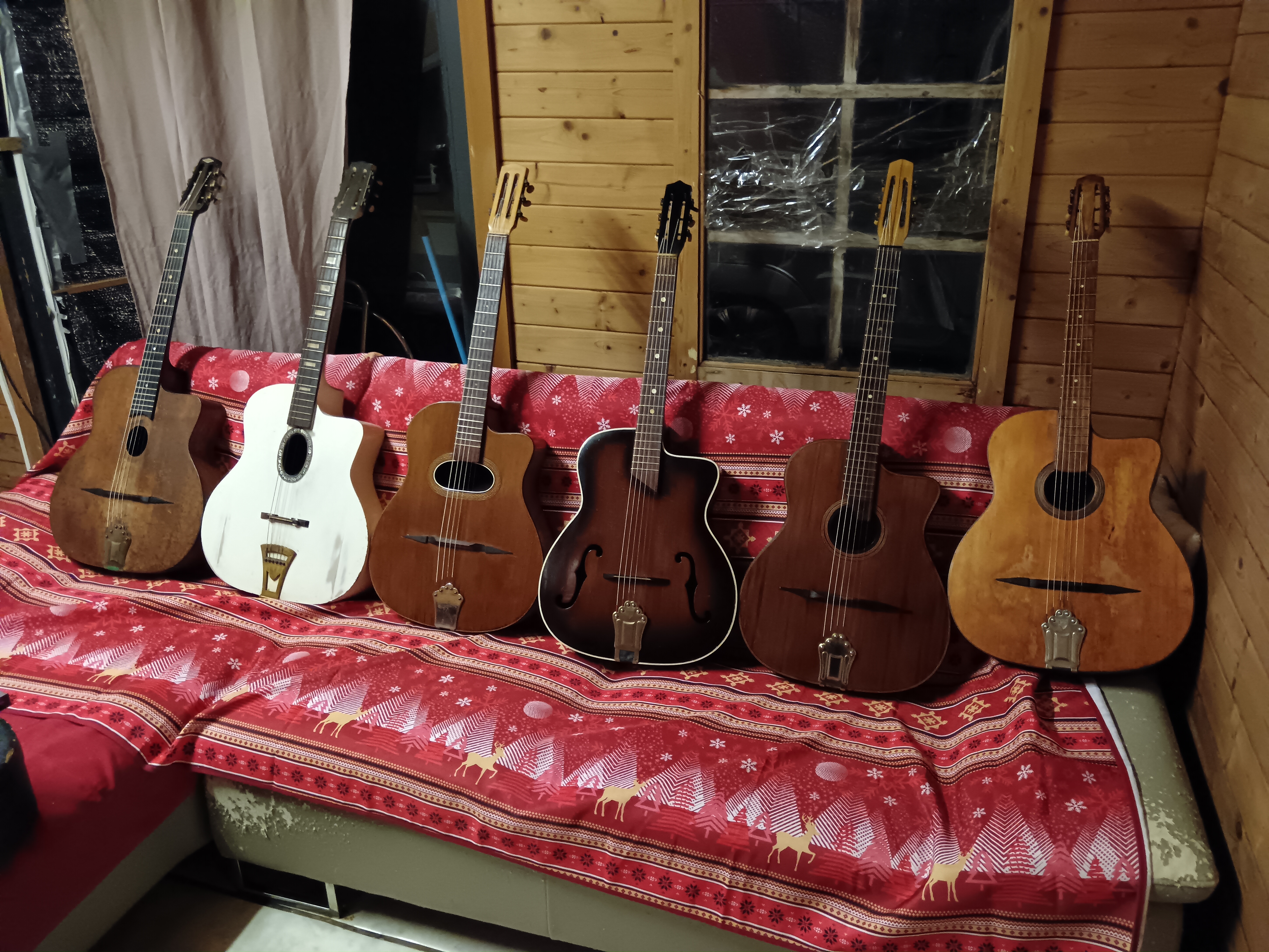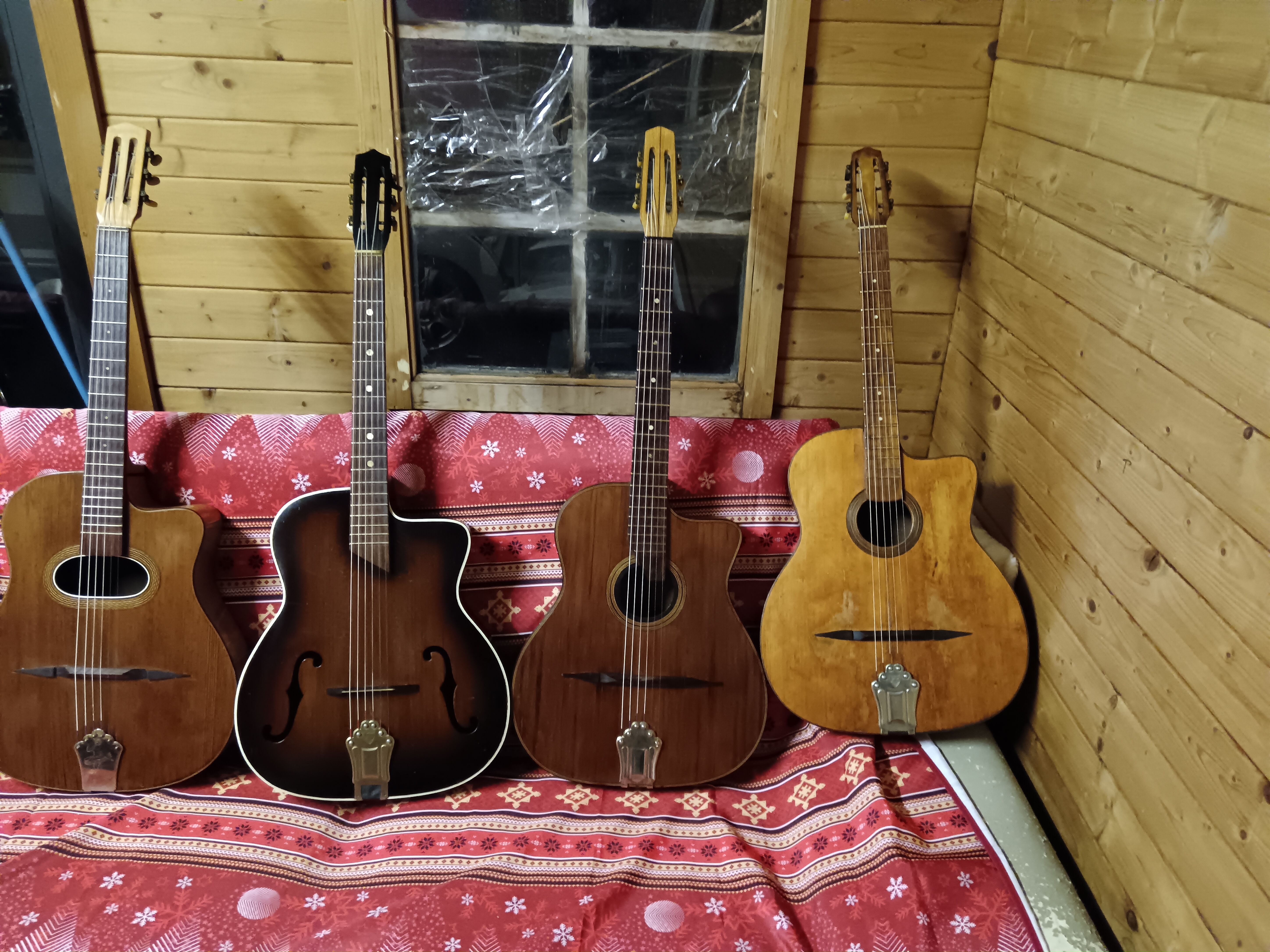 Beautiful collection there. What luthiers are the newer dark brown model F hole and the other dark brown guitar. Look nice also!