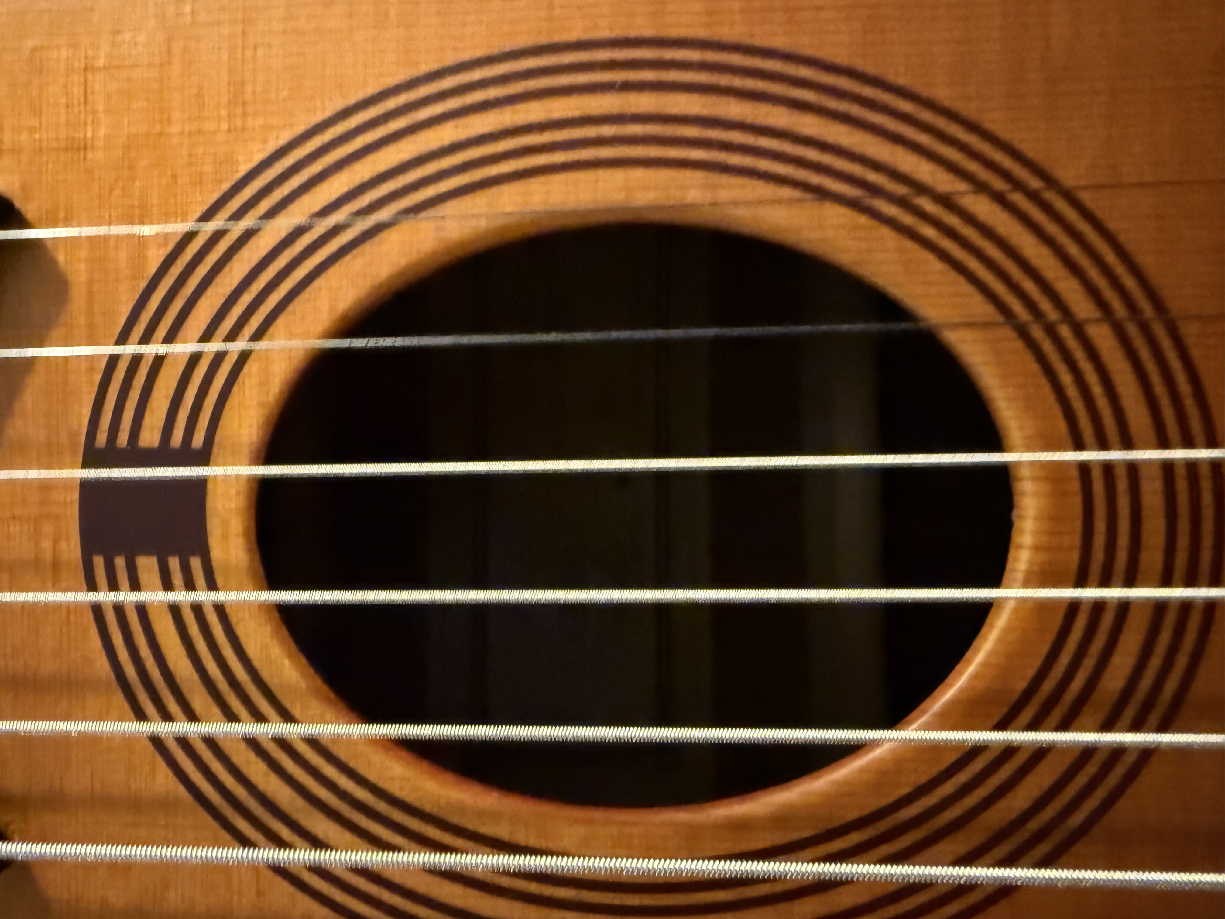 And the sound! Glorious. Dry but not at all harsh. This is a far more versatile design than stereotyping has it. The volume is absolutely stunning, approaching that of my banjos. In fact, the instrument is an amalgamation of plectrum banjo, flamenco guitar, and archtop guitar.
