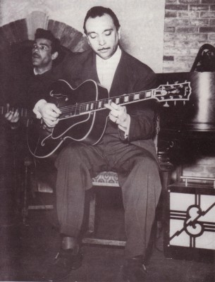 Other sources claim that photo was the last one taken of Django alive in Switzerland in 1953. And that this photo was taken at the same time, with Django on an archtop Gibson with an Epiphone amplifier.