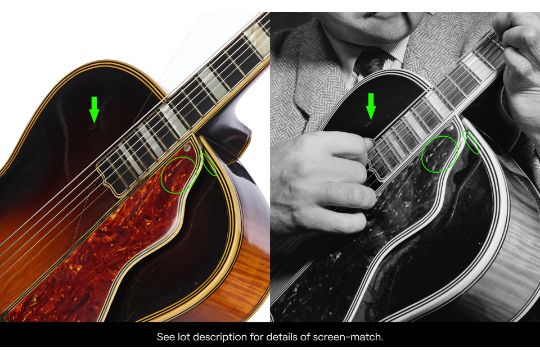 Love the pic there of Fred Guy playing the guitar ala Freddie Green style with it angled on his lap. People -- check out the listing and see the pics of this guitar while they can. AE