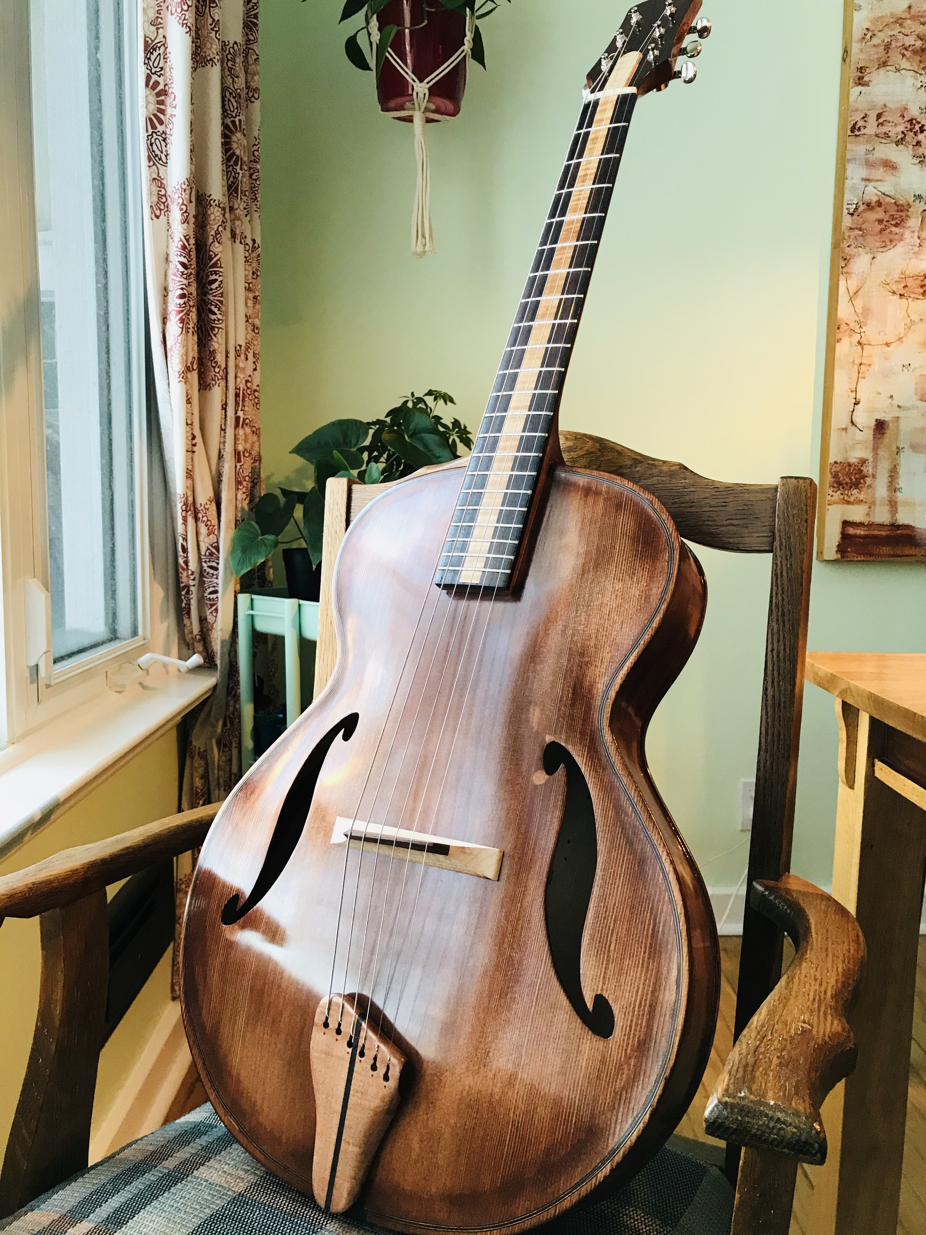 Now that's neat! Did you do violin-type construction with the way the top, sides, and back are connected? Or is that mostly cosmetic? It reminds me of the work of Joseph Campanella on mandolins: 2012 Dué Mandolin — Campanella Stringed Instruments (campanellastrings.com)